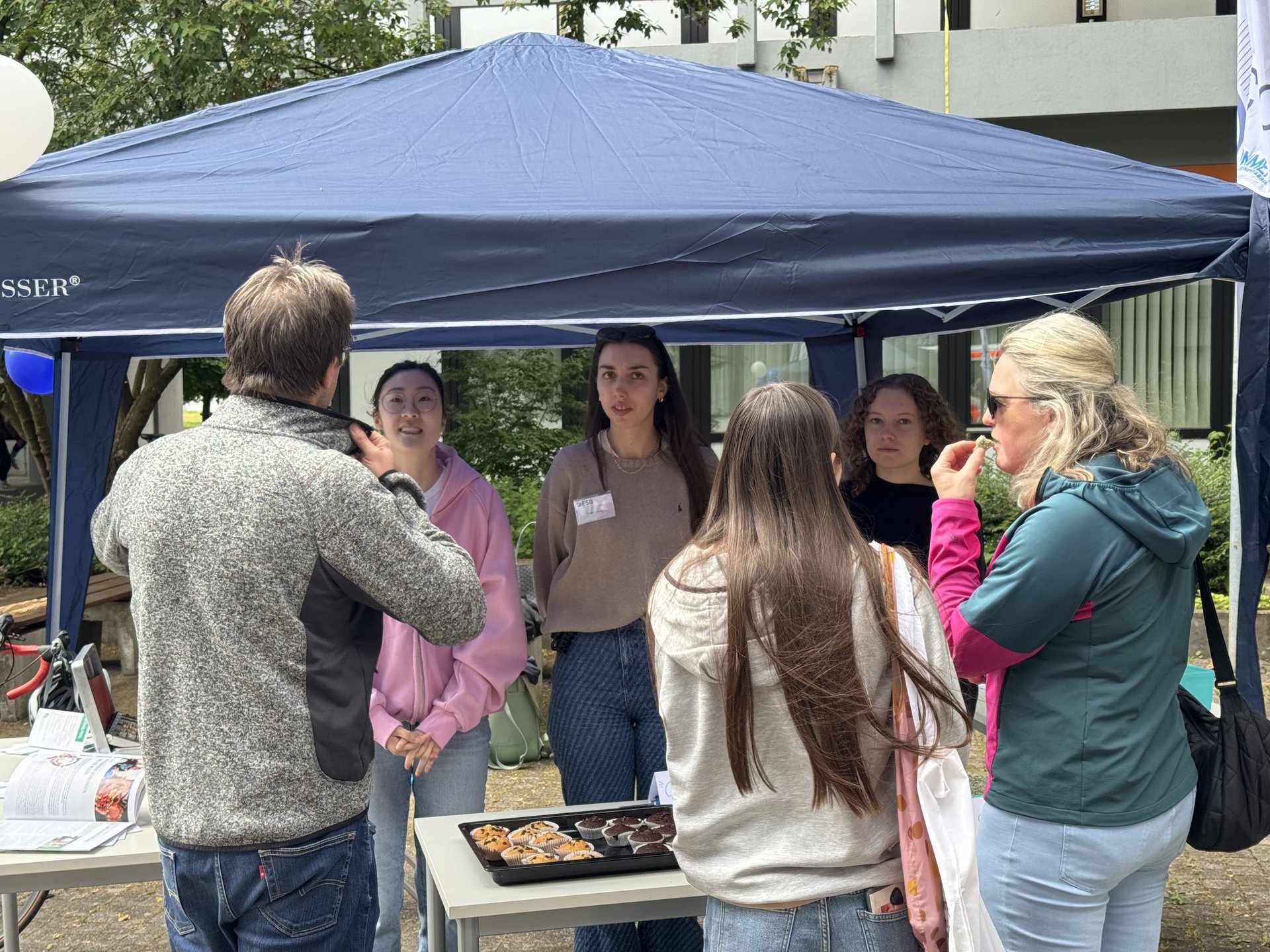 Abgerundet wurde das Programm durch Campusführungen, frisch gebrühten Kaffee aus dem Knowledge Café und eine Kuchenauswahl vom studentischen ESB Charity-Ressort. Auch die Studierenden-Initiave Cycling for Charity präsentierte sich mit einem Stand.
