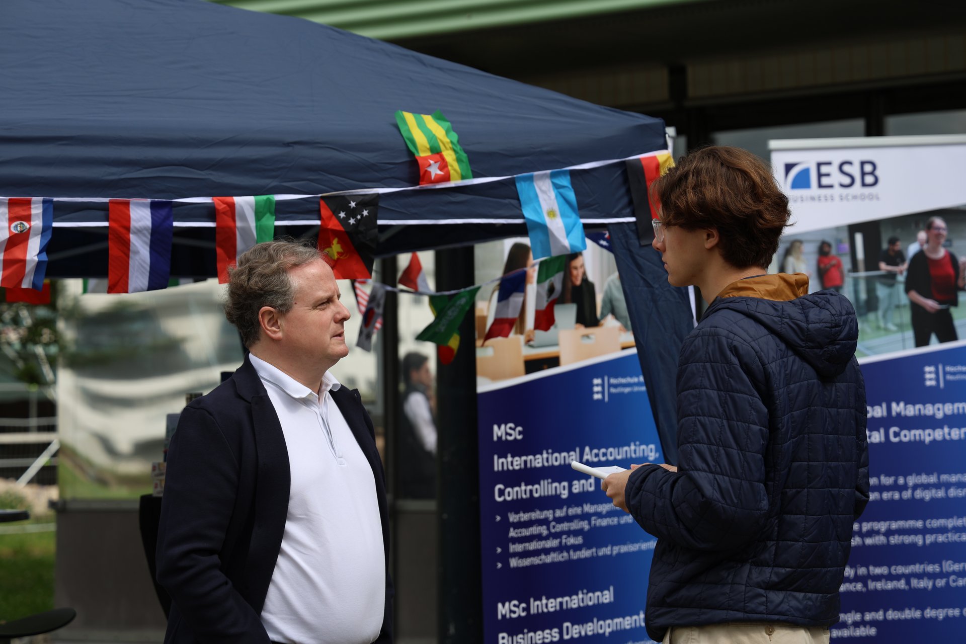 Am Samstag, den 24. Mai, öffnete die Hochschule Reutlingen ihre Türen und lud Interessierte auf den Campus ein. Zahlreiche Besucherinnen und Besucher nutzten die Gelegenheit, sich über das vielseitige Studienangebot der ESB Business School zu informieren, mit Studierenden und Lehrenden ins Gespräch zu kommen und Einblicke in die internationale Ausrichtung zu erhalten.
