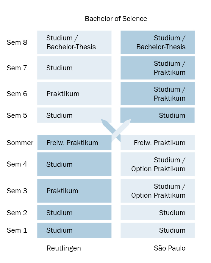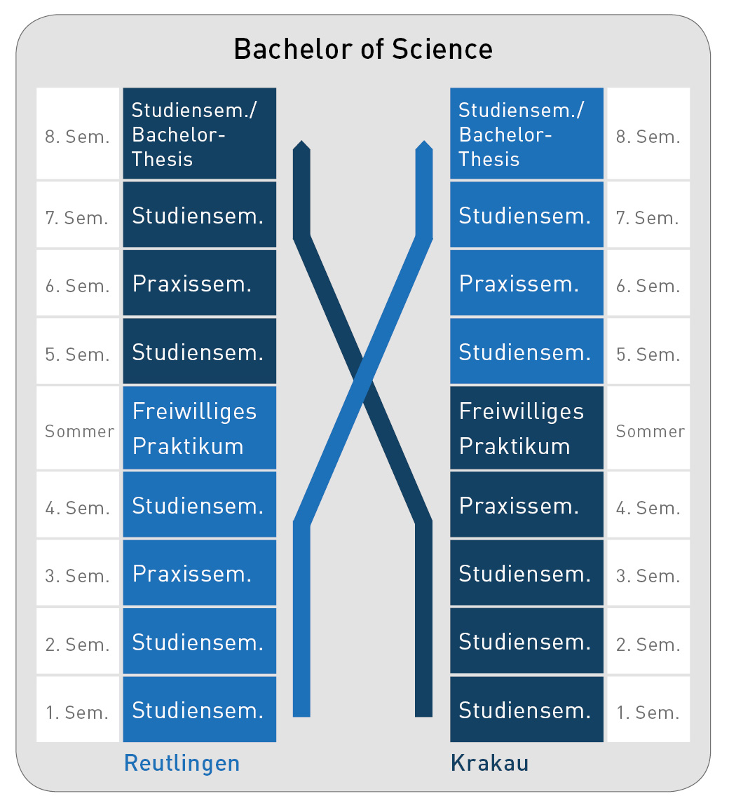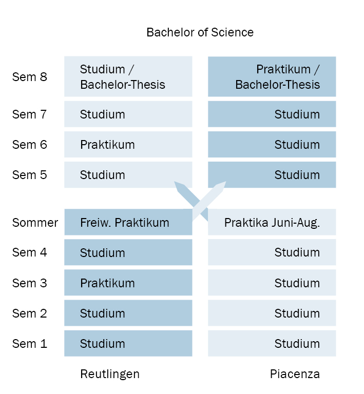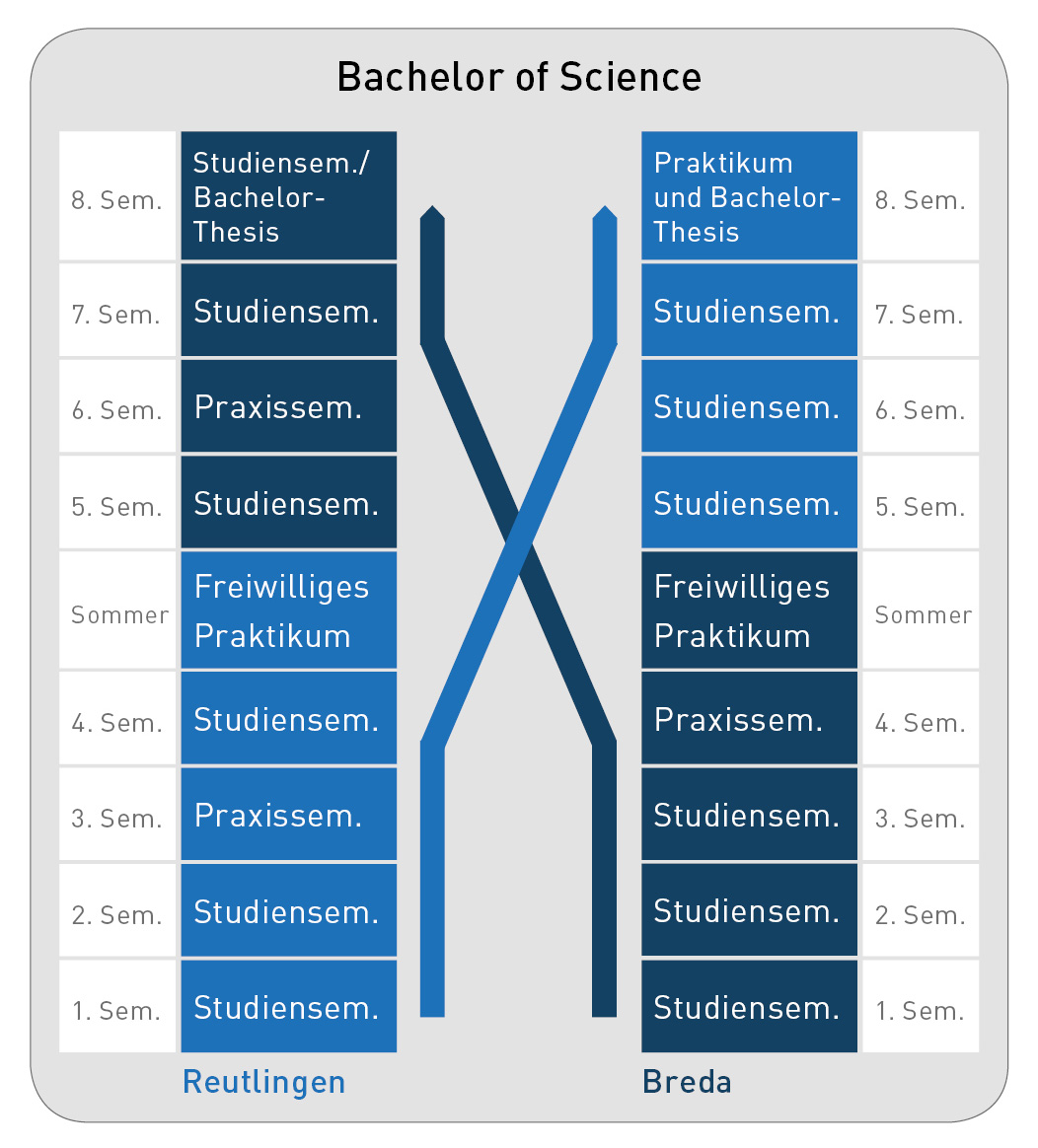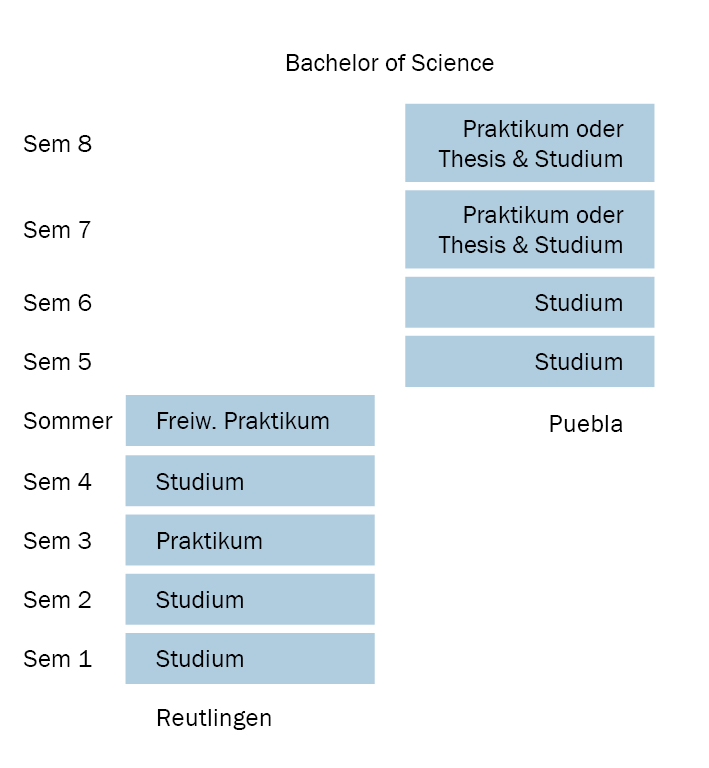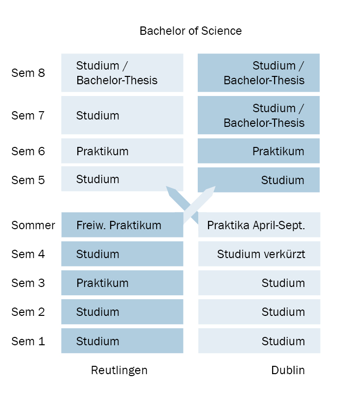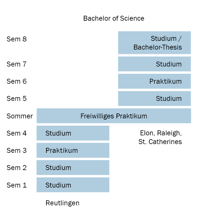 Wer in Reutlingen beginnt, absolviert im dritten Semester ein Praktikum in Deutschland und im sechsten Semester ein Praktikum in Großbritannien.